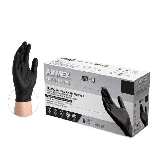 Ammex X3 Black Nitrile Gloves 3Mil Medium