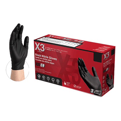 Ammex X3 Black Nitrile Gloves 3Mil Large